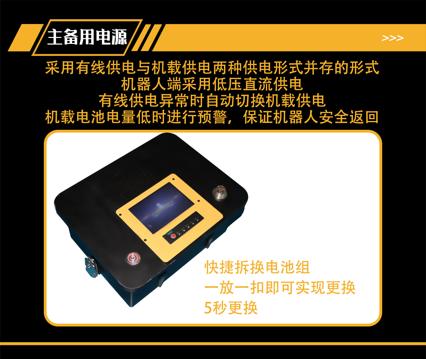 (2)快捷拆換電池組,一放一扣即可實(shí)現(xiàn)更換,5秒更換;