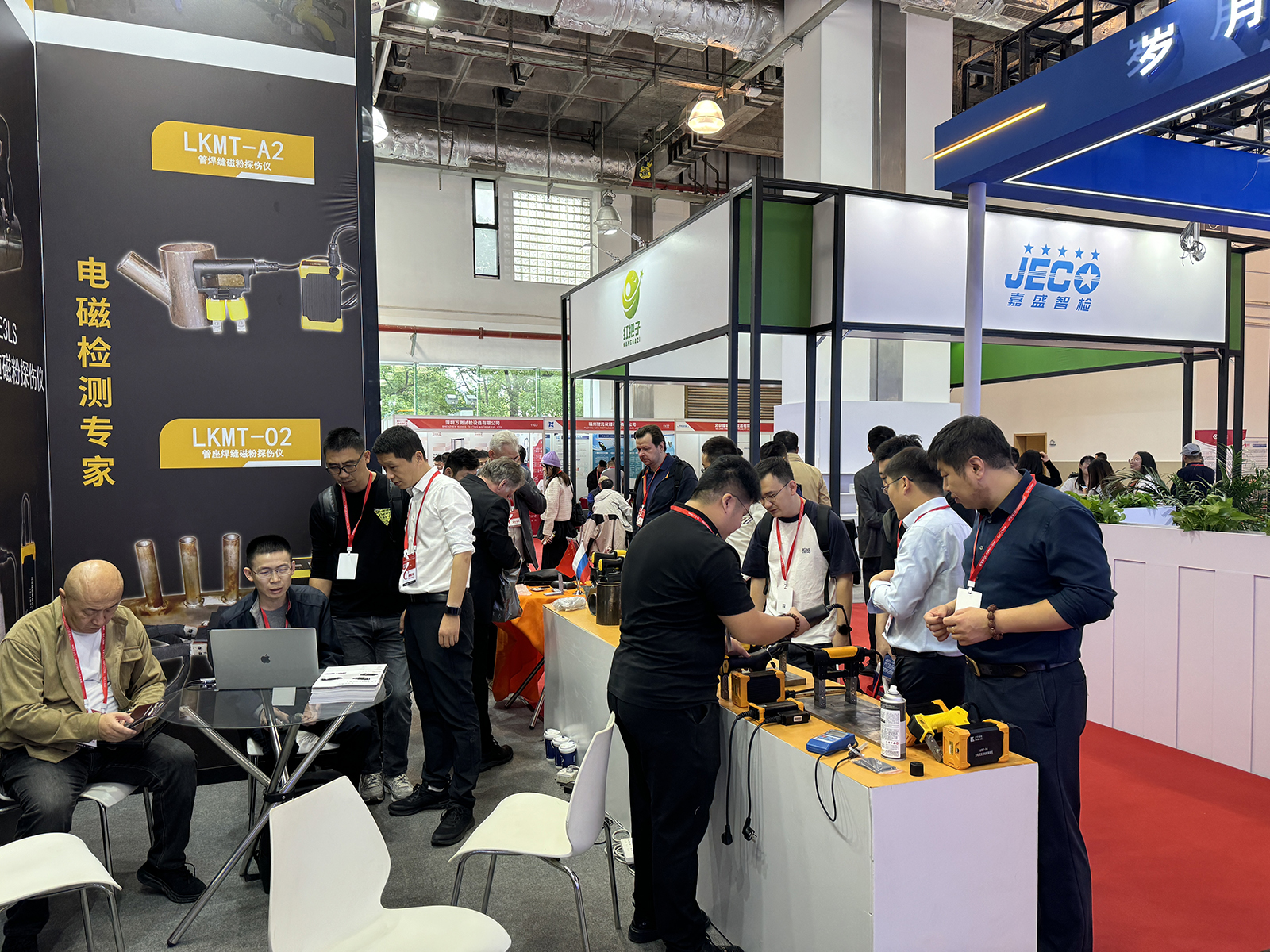 展會全程演示濟寧魯科自主研發的無線磁軛探傷儀、智能識別磁軛探傷儀、寬焊縫磁粉探傷儀、管座焊縫磁粉探傷儀、交流電磁場檢測儀(ACFM)、防爆測厚儀等等。這些研究成果極大減輕了檢測人員的工作強度,檢測更加精準化、智能化,這些研究成果獲得了參展嘉賓的一致好評。