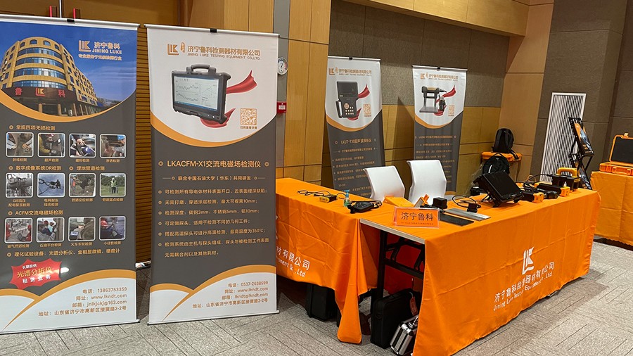 會議同時舉辦無損檢測設備展覽,濟寧魯科檢測器材有限公司攜聯合中國石油大學(華東)共同研發的ACFM交流電磁場檢測儀、 代理英國信固M5-C3系列超聲波測厚儀、自主研發的超聲波測厚儀、超聲波探傷儀、觀片燈、磁粉探傷儀、里氏硬度計等無損檢測儀器高光亮相。