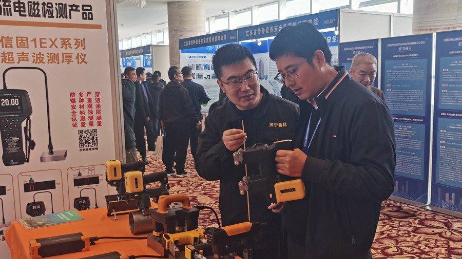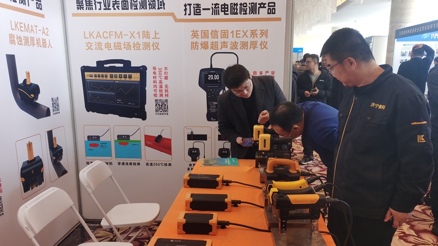 濟寧魯科檢測器材有限公司出席會議并攜自主研發的LKMT-D3無線磁軛探傷儀、LKMT-E2充電式旋轉磁場探傷儀、LKMT-E3L管道磁粉探傷儀、LKMT-E3A系列角焊縫磁粉探傷儀、LKMT-D6充電式交直流磁軛探傷儀、LKEMAT-A2腐蝕測厚機器人,以及聯合中國石油大學(華東)共同研發的ACFM交流電磁場檢測儀等設備參加設備展示,收到與會嘉賓一致好評。