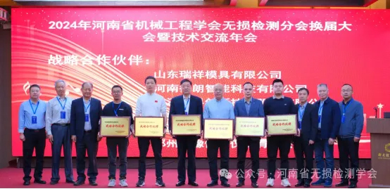 會上還對長期以來大力支持河南省無損檢測事業(yè)的單位進行了表彰,榮獲河南省無損檢測分會‘戰(zhàn)略合作伙伴’的企業(yè)有:濟寧魯科檢測器材有限公司、河南德朗智能科技有限公司、武漢中科創(chuàng)新技術股份有限公司、汕頭市超聲儀器研究所股份有限公司、山東瑞祥模具有限公司、鄭州蘇豫儀器儀表有限公司。