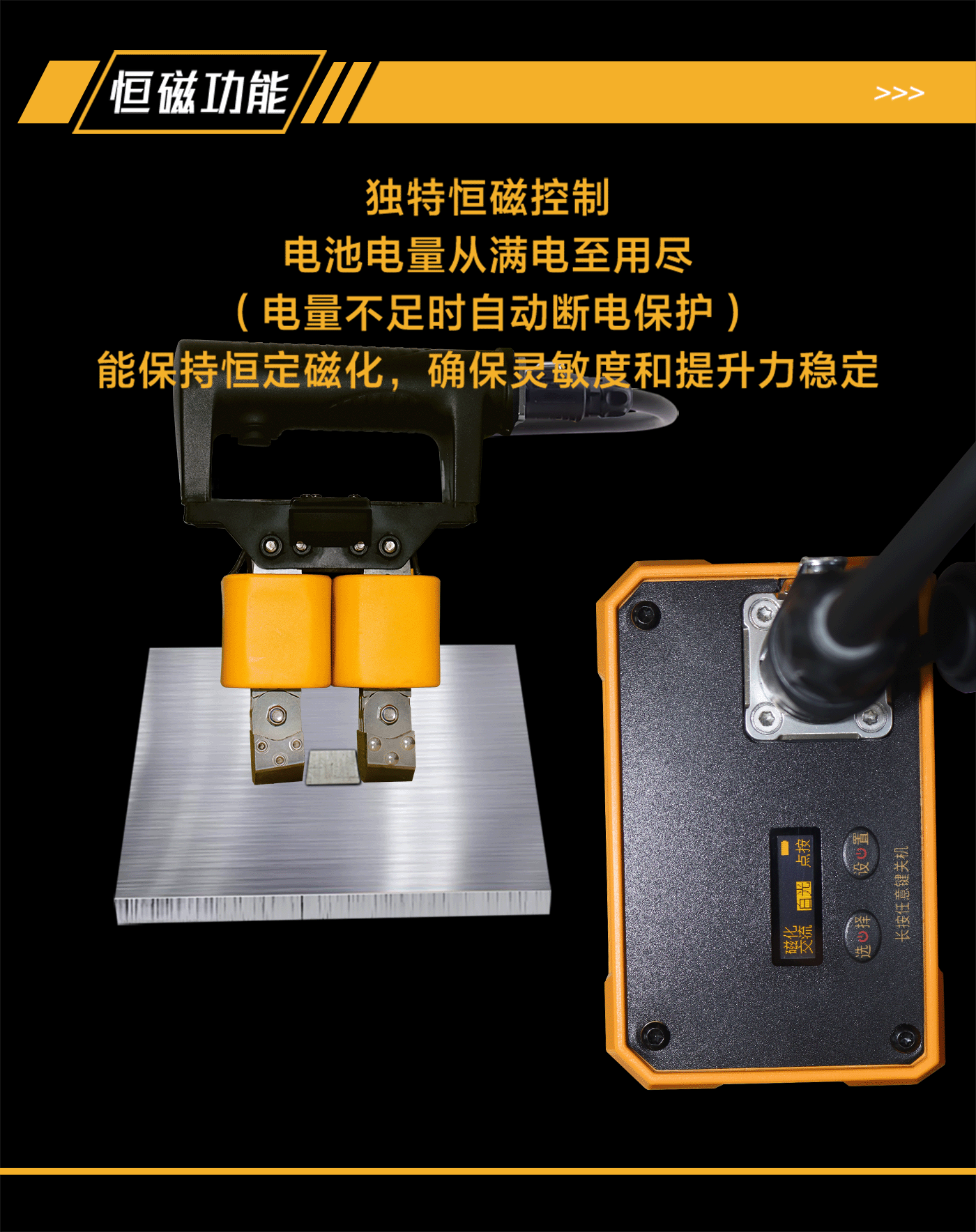 6、恒磁控制功能,因電量下降導致提升力不滿足探傷需求時自動斷電,保證探傷靈敏度。