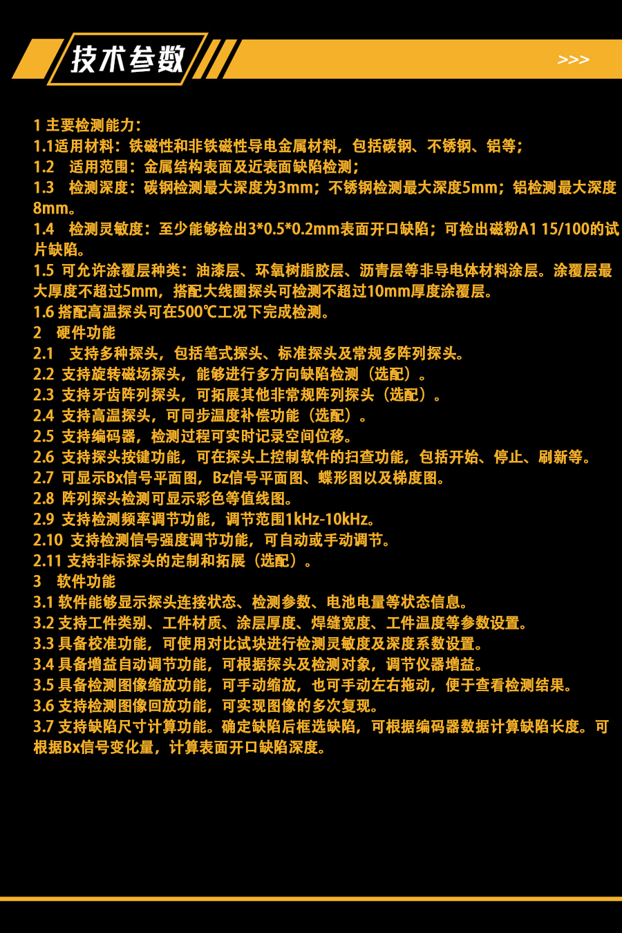 檢測深度:碳鋼檢測最大深度為3mm;不銹鋼檢測最大深度5mm;鋁檢測最大深度8mm;