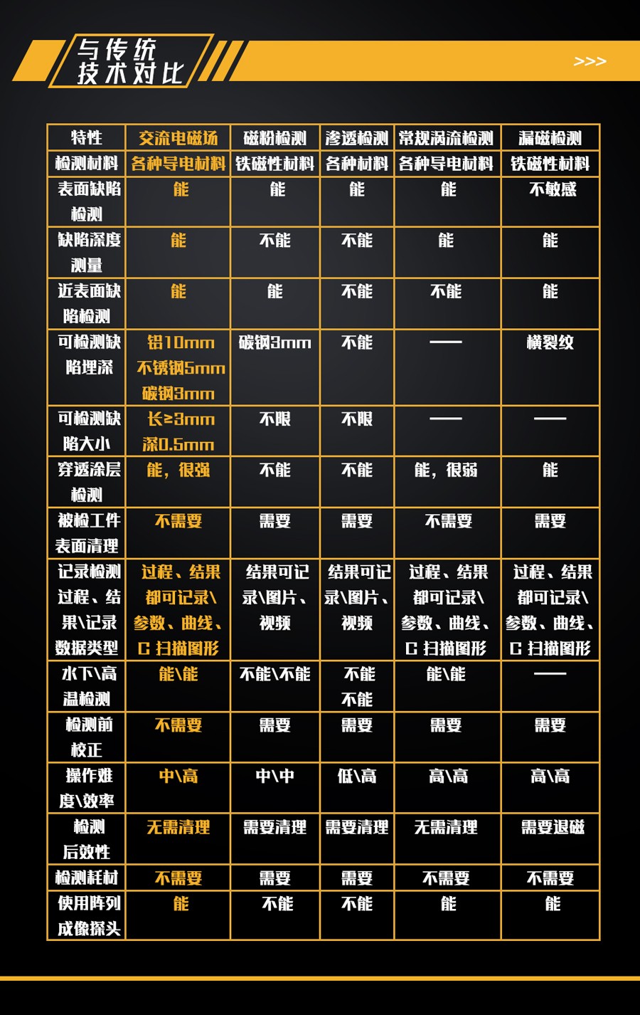 6、便攜式的檢測系統,減少檢測人員的勞動強度提升檢測效率;探頭可以較快的速度進行掃查,檢測無后效性,無需退磁、表面清理等;