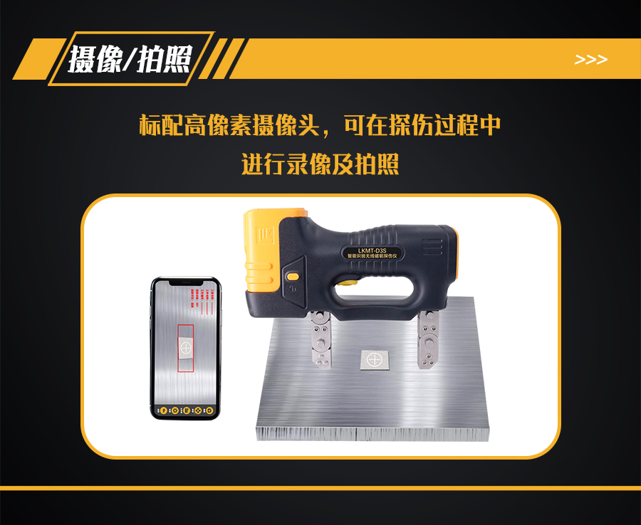 9、探頭內部裝有500萬像素攝像頭,手機、平板電腦或AR眼鏡等手持終端安裝APP軟件,通過Wi-Fi與探頭鏈接,手持終端實時顯示探傷狀態。