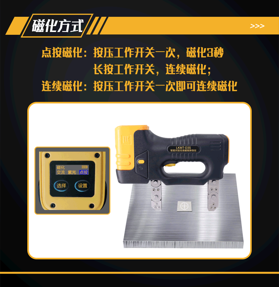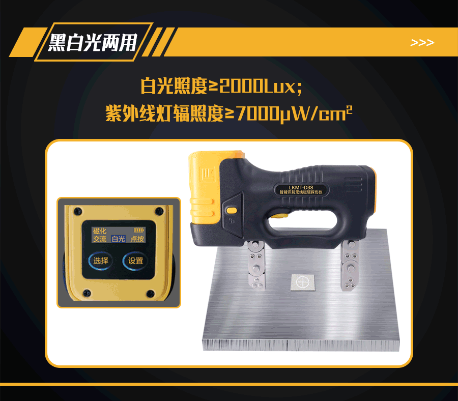 1、LKMT-D3S一體式交直流磁軛探傷儀,探頭與鋰電池一體式設計,無需使用線鏈接。