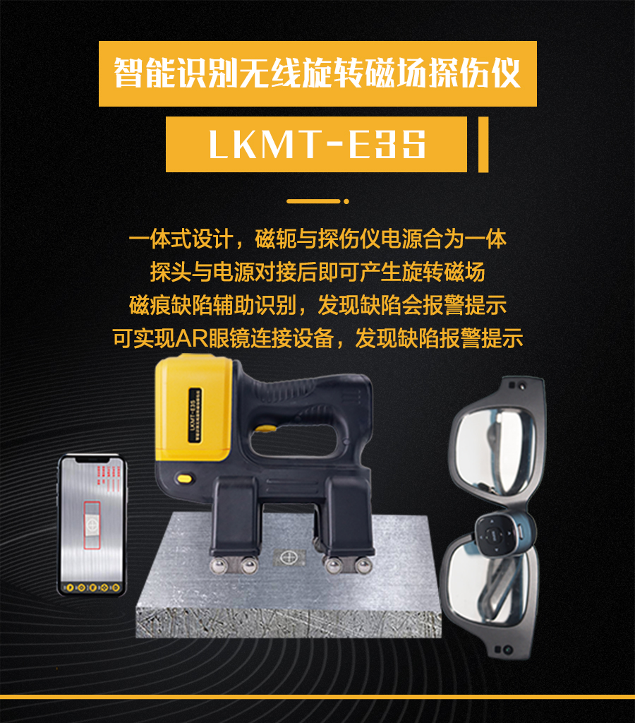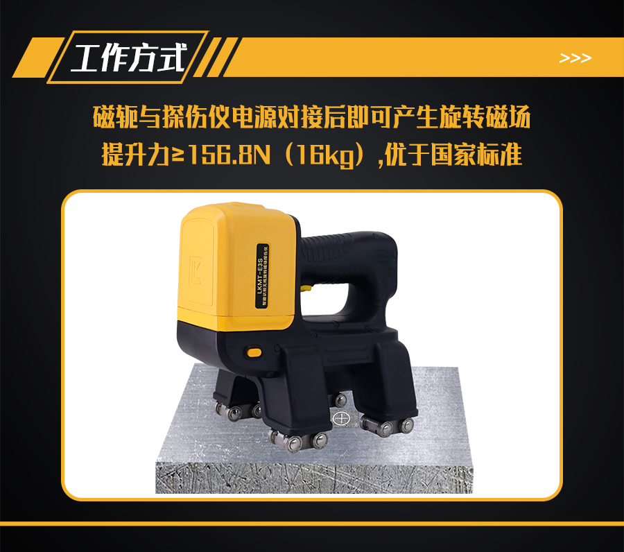 1、LKMT-E3S一體式旋轉磁場探傷儀,探頭與鋰電池一體式設計,無需使用線鏈接。