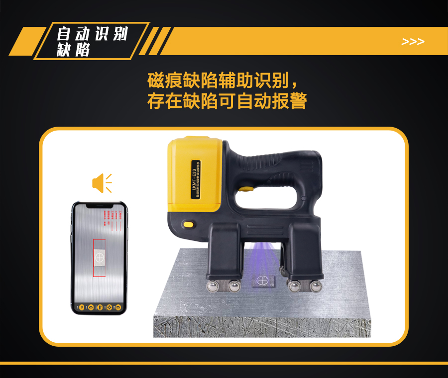 ? (2)自動識別缺陷:磁痕缺陷輔助識別,發現缺陷可語音報警,并在圖像中自動標記出缺陷位置,將有缺陷的圖片保存到手持終端。